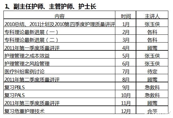 医院感染专题培训 | 护士长、科室负责人、医生 | 4月份 王传清 | 4月中旬 |
