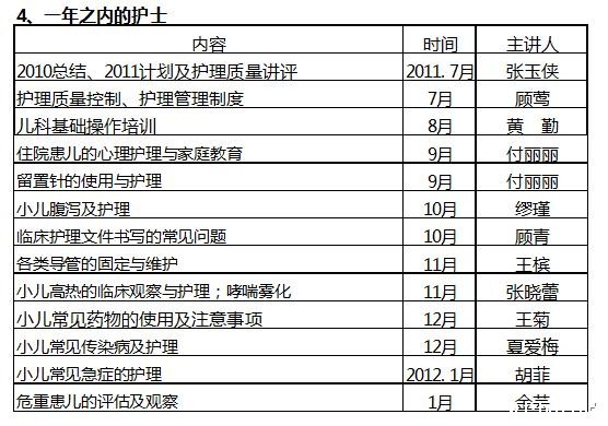 进修护士医院感染预防和控制培训 | 进修护士 | 4月份 王传清 | 4月份 |
