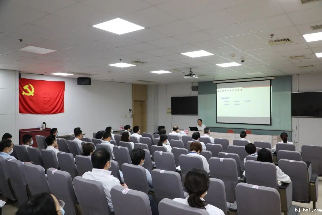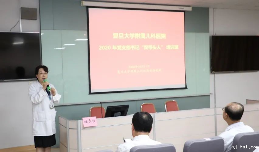 2020年8月11日中午,竞技宝app官方党支部书记“双带头人”培训班特别邀请到JJB竞技宝平台登录入口常务副校长、JJB竞技宝平台登录入口上海医学院院长桂永浩教授莅临授课。儿科医院党委书记徐虹、院长黄国英、党委副书记张瑾、董岿然、副院长周文浩、翟晓文及党委中心组党员干部、党支部书记、副书记、火线入党党员、四青人才等参加会议,会议由徐虹书记主持。