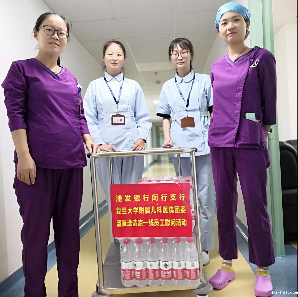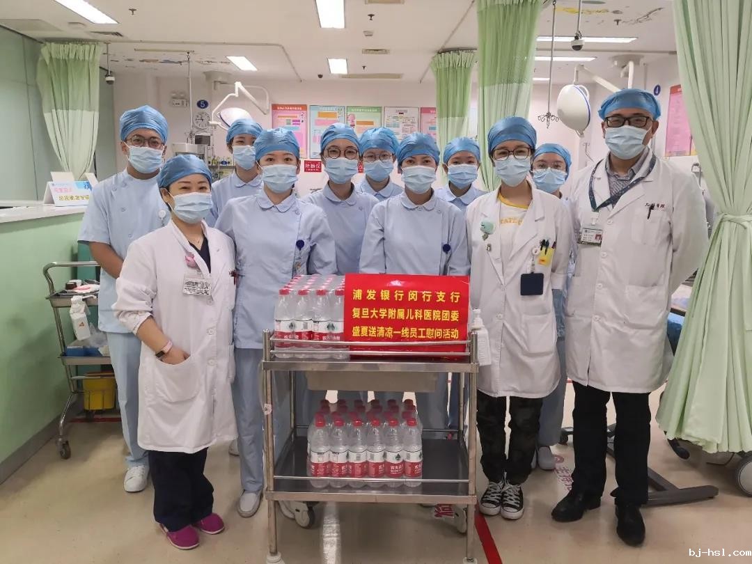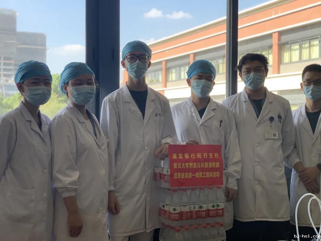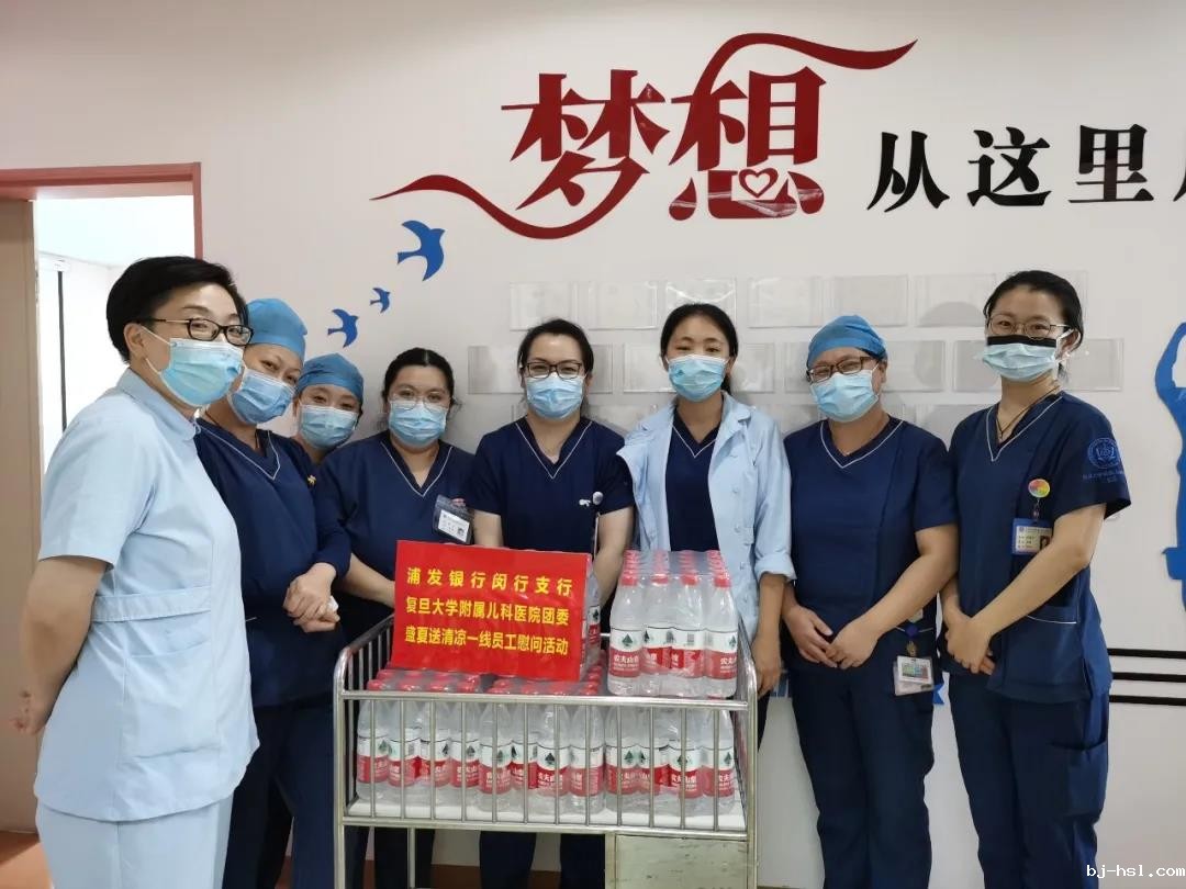 连日来上海多次发布高温预警,经历战“疫”后的儿科人不畏酷暑,在疫情防控常态化之时,坚守在各自的岗位上,为护佑儿童健康贡献自己的力量。恰逢第三个中国医师节,为致敬一线医务人员,2020年8月19日,我院团委共建单位浦发银行闵行支行团委再次来到我院,慰问儿科医务工作者,为一线工作的医务人员带来了清凉。凉凉一瓶水,既是对儿科人勤奋工作的肯定,也体现了外联团委对儿科人的深厚感情。