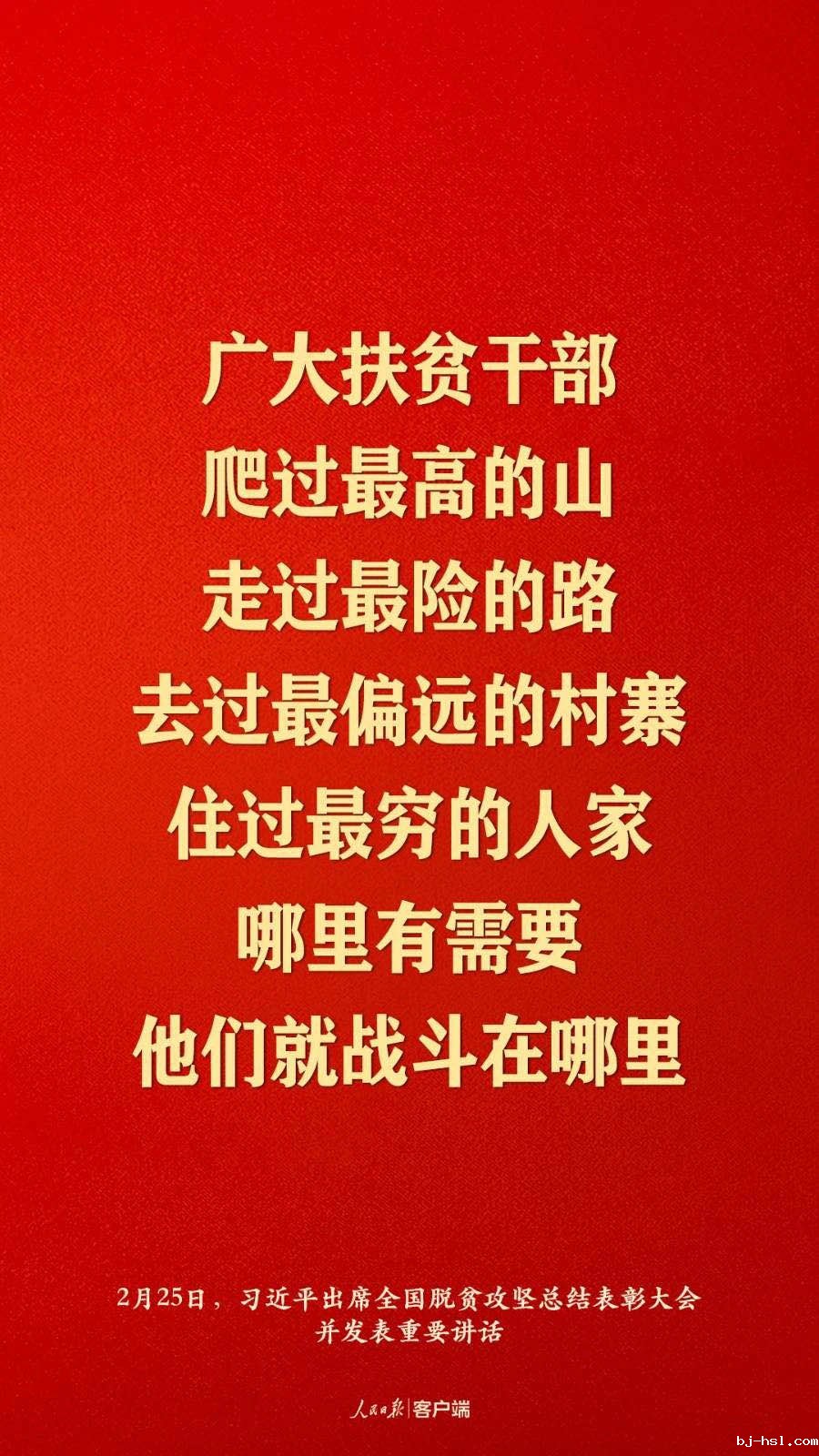 在全国脱贫攻坚总结表影大会上,我们看到一个个优秀获得者走过,那是中国的英雄!他将自己知识播撒在贫瘠的土地上,将脱贫的坚定思想种在每个贫困民众的心上,将贫困从根本上拔除。每一位扶贫工作人员虽身处相对恶劣的自然环境中,但从未动摇过打赢脱贫攻坚战的思想,终于在全党、全国人民的努力下完成任务。甩掉穷帽子过上好日子。没有比人更高的山,没有比脚更长的路。我们要坚定信心決心,真抓实干、埋头苦干,向着实现第二个百年奋斗目标奋勇前进!
