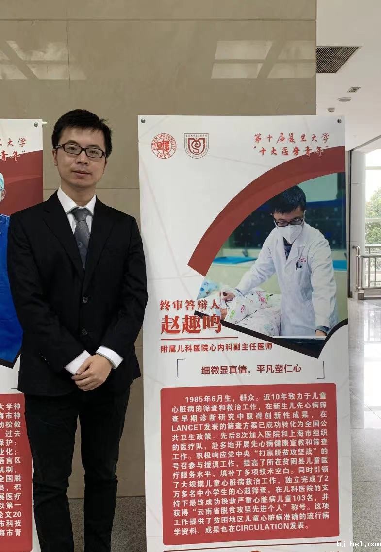 1985年6月生,群众,附属儿科医院心内科副主任医师。近10年致力于儿童心脏病的筛查和救治工作,在新生儿先心病筛查早期诊断研究中取得创新性成果,在Lancet发表的筛查方案已成功转化为全国公共卫生政策。先后8次加入医院和上海市组织的医疗队,赴多地开展先心病健康宣教和筛查工作。积极响应党中央“打赢脱贫攻坚战”的号召参与援滇工作,提高了所在贫困县儿童医疗服务水平,填补了多项技术空白。同时引领了大规模儿童心脏病救治工作,独立完成了2万多名中小学生的心超筛查,在儿科医院的支持下最终成功挽救严重心脏病儿童103名,并获得“云南省脱贫攻坚先进个人”称号。这项工作提供了贫困地区儿童心脏病准确的流行病学资料,成果也在Circulation发表。