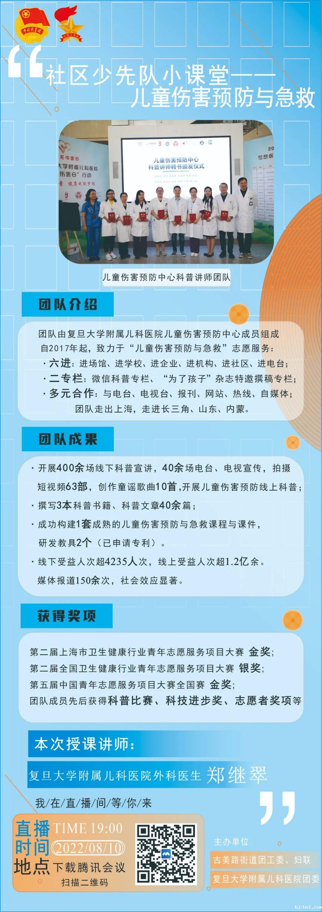 竞技宝app官方儿童伤害预防中心科普讲师团队成立于2015年,共开展400余场线下科普宣讲,40余场电台、电视宣传,拍摄短视频63部,创作童谣歌曲10首。撰写《儿童意外伤害预防与急救全攻略》、《空中急救手册》(副主编)、《对新型冠状病毒肺炎说“不”》(副主编)3部科普书籍,撰写《为了孩子》科普文章40余篇,研发教具2个(已申请专利)。线下受益人次超4235人次,线上受益人次超1.2亿余。媒体报道150余次。