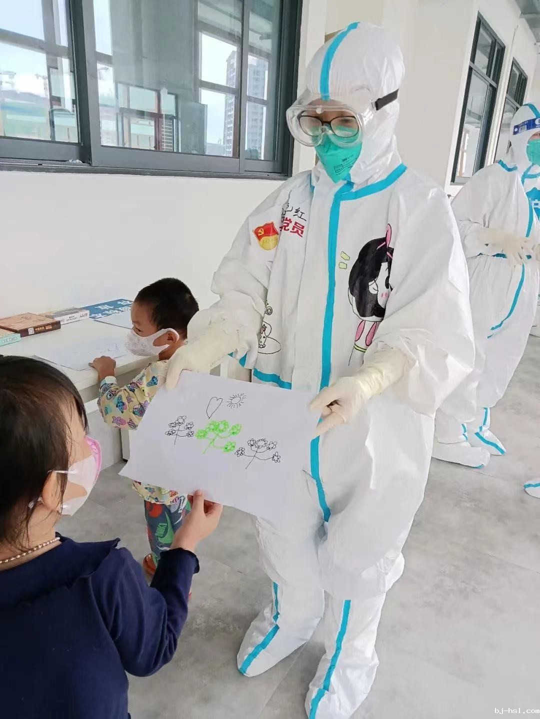 虽然有着两次进入上海公卫抗疫的经验,接管方舱医院对我们来说是一个全新的挑战。作为入党积极分子的我,以党员的标准严格要求自己,向身边的党员们学习。在这里,夏老师和张艳红老师带领我们一起解决工作及生活上的困难,工作环境一步步改善,工作流程一步步优化,制度一点点完善,患儿和家属们的情绪得到了很好的稳定,也让我们战胜疫情的决心越来越坚定。工作虽然忙碌,但遇到了很多乐于助人的“活雷锋”和小天使,他们化身志愿者帮助我们收拾垃圾,协助我们给其他的患者分发口罩及食物,还有小朋友为大白们画画,一幕幕都令人感动。相信只要我们坚定信心、全力以赴,就一定能打赢这场疫情阻击战!只要我们众志成城、携手并肩、守望相助,就一定能战胜病毒,赢得胜利!