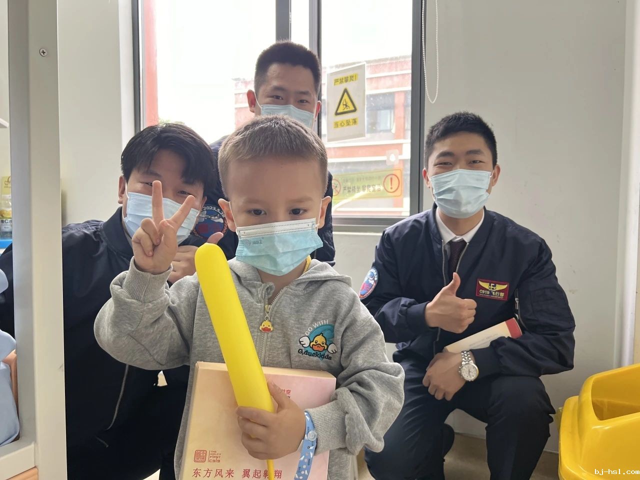 来自东航飞行部与机关团委的8名青年志愿者来到医院,其中包括C919国产大飞机的飞行员和公司机关优秀青年。他们带来了精心准备的东航文创礼物,如飞机模型、卡通贴图等,为病房内的孩子们送上了节日的惊喜。