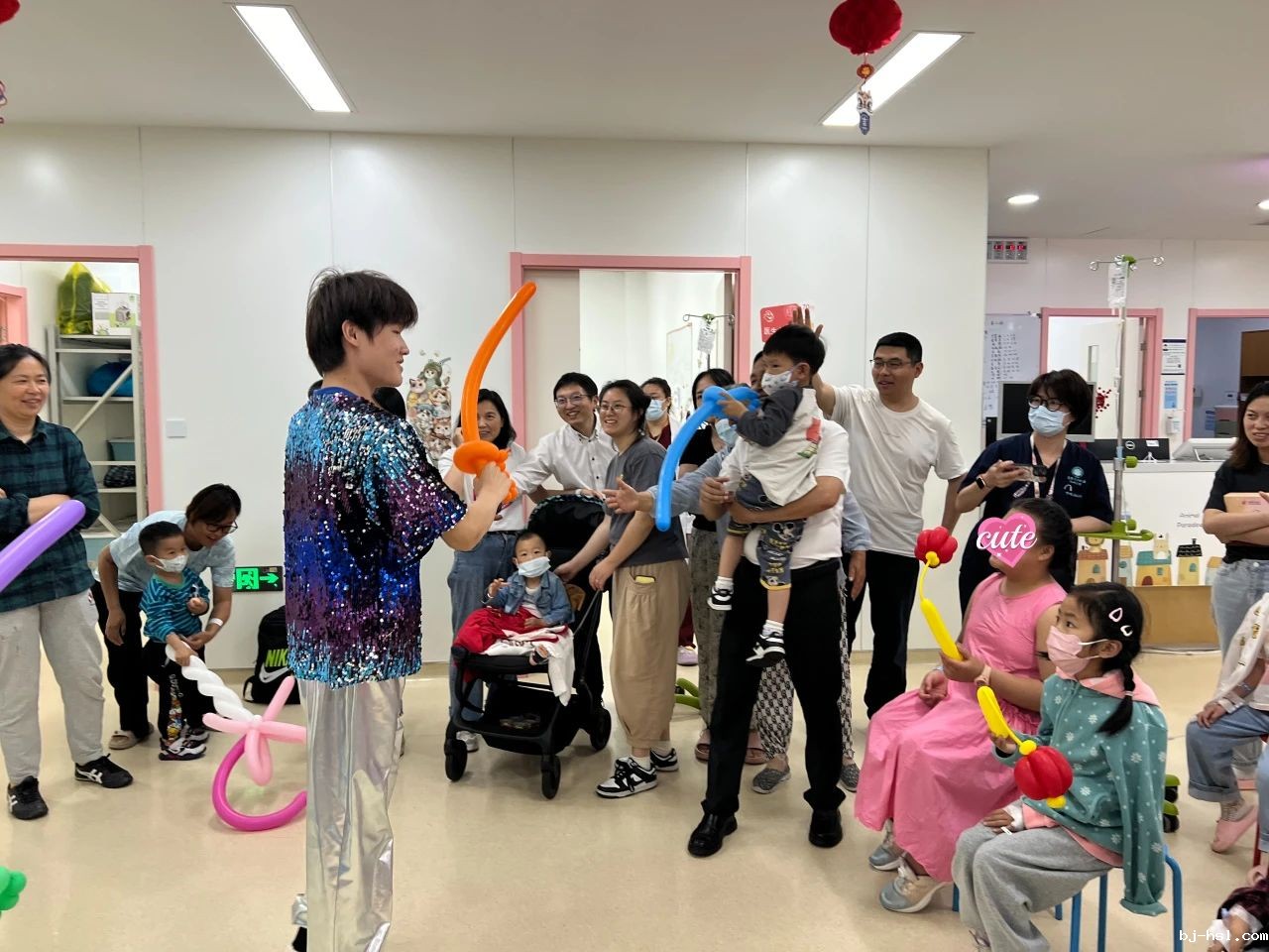 上海市马戏学校团支部的爱心志愿者为呼吸科综合病房的患儿们带来了《滑稽扎气球》表演,熟练的技巧、形象逼真的扎气球,引来小朋友们的阵阵欢呼声和掌声。