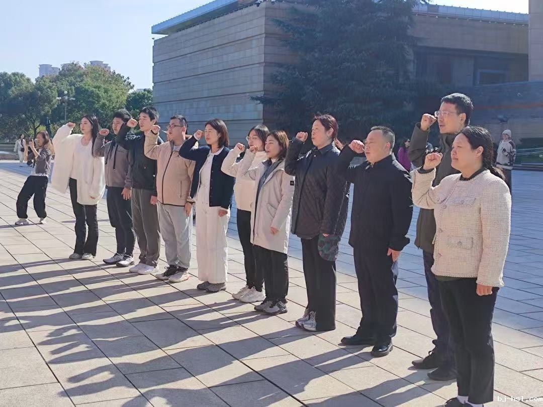 走出纪念馆,全体成员来到宣誓墙前,面对鲜红的党旗和团旗,庄严宣誓。党支部书记王素娟带领党员重温入党誓词,铿锵有力的誓言在空气中回荡,表达了党员们对党的忠诚以及为共产主义事业奋斗终身的坚定决心。团员们重温入团誓词,青春的誓言激昂澎湃,彰显了团员们不忘初心、紧跟党走的信念与决心。这一刻,党员和团员们的心灵再次受到洗礼,责任感和使命感油然而生。