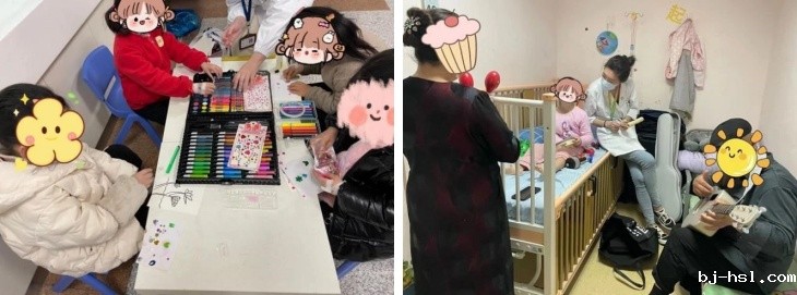 (图为精神心理科音乐治疗师及心理治疗师王昱琳、赵奇慧等在病房内为患有躯体疾病并伴随情绪问题的患儿及其家庭进行干预,旨在帮助患儿调节情绪、缓解疼痛、改善睡眠质量,同时提升其对诊疗的配合度。同时,家庭成员的加入可以增强家庭凝聚力,帮助患儿及其家庭以更积极的态度应对疾病带来的挑战)