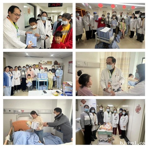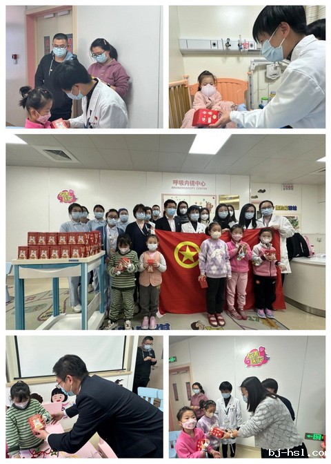 座谈交流会结束后,患儿新年慰问活动正式开始!上海市公安局团委书记尹欣,七宝镇社事办主任方海东,团建联建单位团组织负责人、青年代表及爱心企业代表在儿科医院党委书记李倩,党委副书记董岿然、孙金峤,副院长翟晓文、张晓波,总会计师郭太生,总工程师吉青克,财务总监王荐,院长办公室主任张赟健,纪委办公室主任黄青菁,门诊办公室主任史雨,教育培训部/党委学生工作部主任吴静燕,财务科主任李震杰,党委办公室副主任余卓文,团委书记王作鹏,副书记李巍、刘春雪、孙瑜,团委委员马乔、陈灏、张亦舜、张志强、马久圆和青年志愿者的陪同下前往各病区与医护代表一道慰问患儿,并送上精心准备的新年礼物。