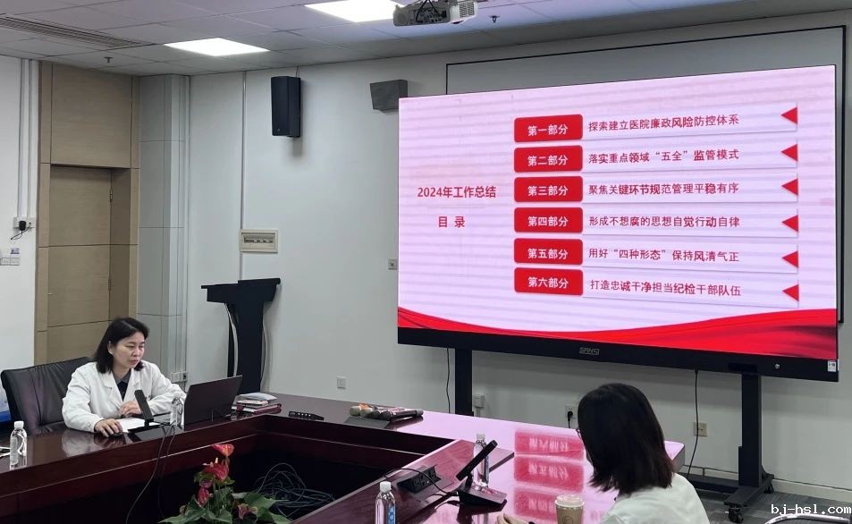 纪委办主任黄青菁在工作总结中,从探索建立医院廉政风险防控体系、落实重点领域“五全”监管模式、聚焦关键环节规范管理平稳有序、形成不想腐的思想自觉行动自律、用好“四种形态”保持风清气正、打造忠诚干净担当纪检干部队伍等六个方面,全面地、系统地介绍了医院纪委2024年工作情况,提出2025年的工作设想,明确了下一步工作方向。