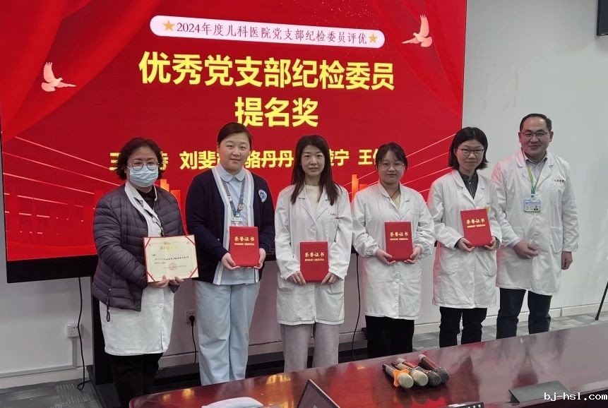 会上进行了首次儿科医院优秀纪检委员表彰。经过自评、初评和汇报评审,评选出了儿科医院首届的优秀纪检委员5名、提名奖5名。会议现场,孙金峤书记为获奖者颁发了荣誉证书。后勤第2党支部、护理第4党支部纪检委员夏青、秦妍就党支部纪检委员的工作情况与亮点作了分享。