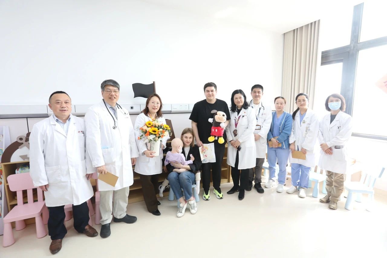 2025年3月20日,竞技宝app官方临床研究型病房洋溢着暖暖春意,来自神经科、血液移植科、临床遗传科、康复科、营养科及临床研究型病房的专家团队,共同庆祝来自俄罗斯的4岁女孩玛丽(化名)造血干细胞移植成功,顺利出院。