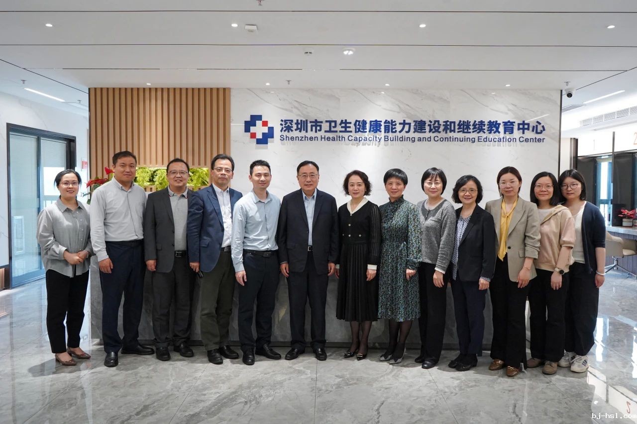 在深圳市卫生健康能力建设和继续教育中心,赖金明主任和章能华副主任等带领考察团参观了6000多平方米的医学模拟培训与研究中心,双方就培训课程及人才培养情况做了交流。