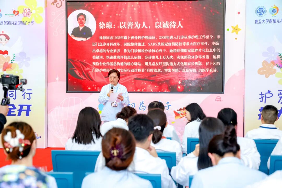 大会还邀请忠儿奖获得者代表——门诊主管护师徐琼分享职业感言,三十载栉风沐雨、三十载坚定守护,徐老师的娓娓道来让现场每一位聆听者深受感动。