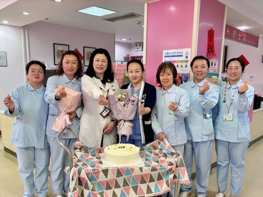 2025年5月12日上午,院领导为坚守岗位、辛勤工作的护士们送去蛋糕、鲜花以及节日的诚挚祝福,悉心询问了护士们的工作情况和生活状况,并对她们的辛勤付出表示衷心的感谢,鼓励大家继续发扬南丁格尔精神,为患儿提供更加优质的护理服务。慰问过程中,院领导特别叮嘱护士们要关注自身身心健康,在繁忙工作之余注意自我调节,保持良好状态。