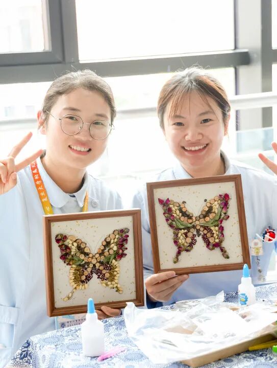 游戏区域里,趣味摸高、平板支撑、飞运乒乓、平衡单立人、趣味铲零食等一系列精彩纷呈的趣味游戏吸引了众多护士兄弟姐妹积极参与。大家在游戏中放松心情,增进友谊,展现了护理团队朝气蓬勃、积极向上的精神风貌。更有非遗中草药画、自制夏日草帽、彩珠串手链等一系列手作疗愈活动,让护士们在紧张繁忙的节奏中暂时抽离,缓解压力、舒缓身心、体验乐趣,享受着属于自己的节日时光。