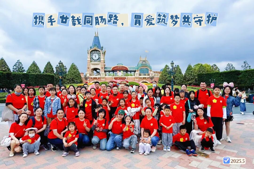 今年,正值复儿IBD俱乐部成立20周年之际,一场充满魔法与温情的特别庆典于5月9日在上海迪士尼乐园隆重举行。在医院社工部傅丽丽主任、社会爱心人士以及迪士尼乐园的倾力支持下,数十个来自全国各地的IBD患儿家庭齐聚于此,共同开启了一场别开生面的“迪士尼梦幻疗愈之旅”。大家共度一段温馨难忘的亲子时光,家长们全身心陪伴孩子玩耍,共享欢乐,不仅缓解了患病期间的家庭压力,还修复了亲子关系,提升家庭应对困难的能力。活动开始前,医院社工部精心设计了破冰游戏,帮助患儿家庭快速建立联系,形成互助支持网络。医护团队和志愿者全程陪伴,确保孩子们在安全的前提下享受最纯粹的快乐。黄瑛教授表示:“医学不仅仅是治疗疾病,更要关注患儿的身心健康,乐园内梦幻欢乐的氛围具有强大的心理疗愈力量,能让长期深陷IBD病痛折磨的孩子们暂时忘却医院的冰冷与病痛的煎熬,有效舒缓焦虑、恐惧等负面情绪,提升心理韧性,增强抗病勇气!”