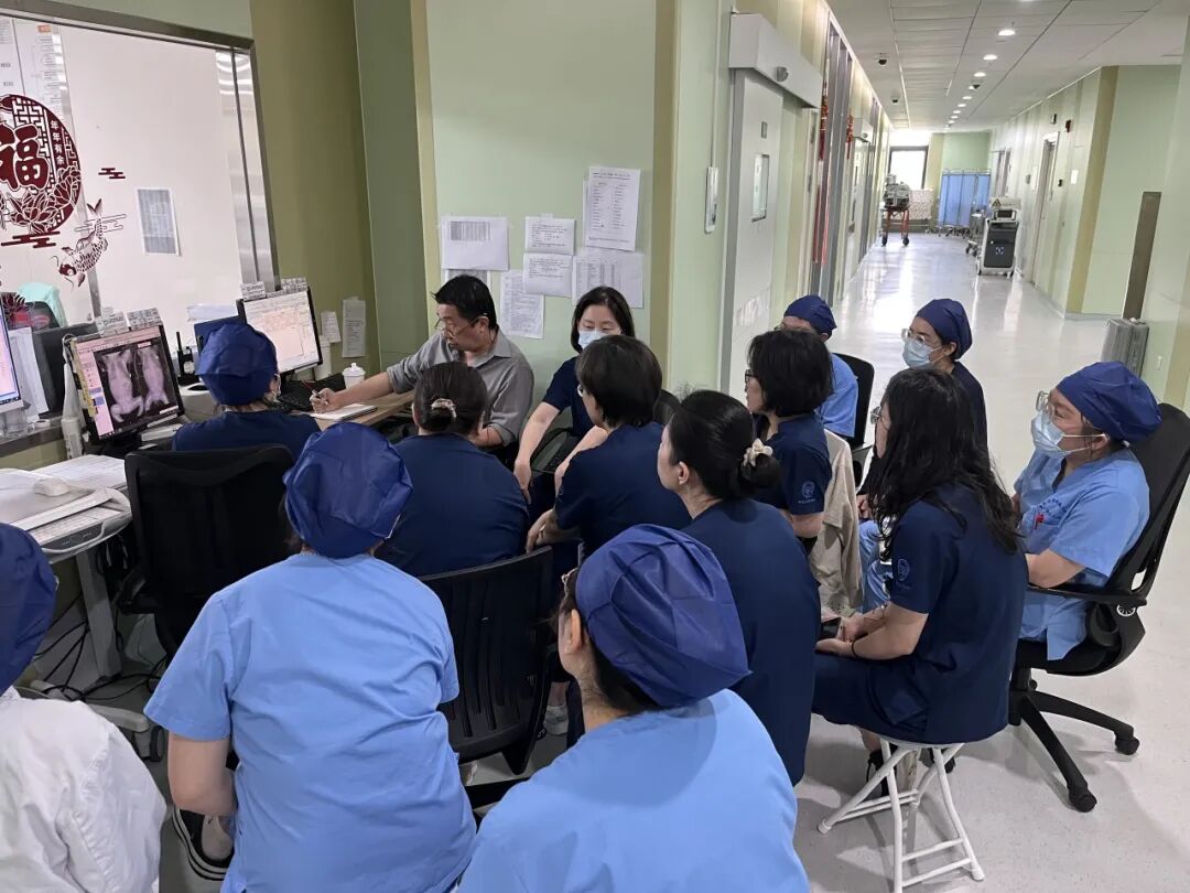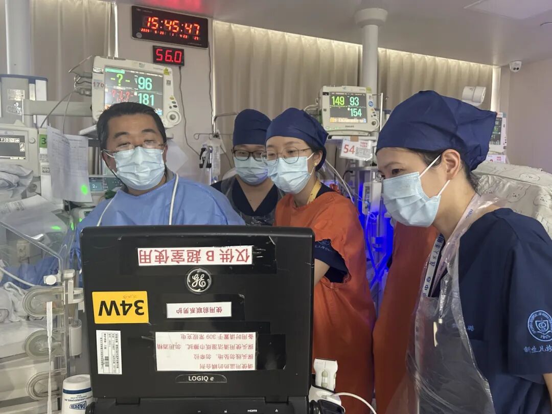 谏山教授每天在新生儿重症监护病房(NICU)查房,并组织了2场教学查房,聚焦超早产儿的管理和早产合并外科疾病的救治提出指导意见。其中,针对3例动脉导管未闭的极早产儿,现场演示功能超声心动图,重点展示了左肺动脉流速、大脑前动脉阻力指数、颅内静脉血流等指标,强调其在判断有血流动力学改变的PDA及颅内出血中的关键价值,结合床旁超声对患儿进行个性化指导。