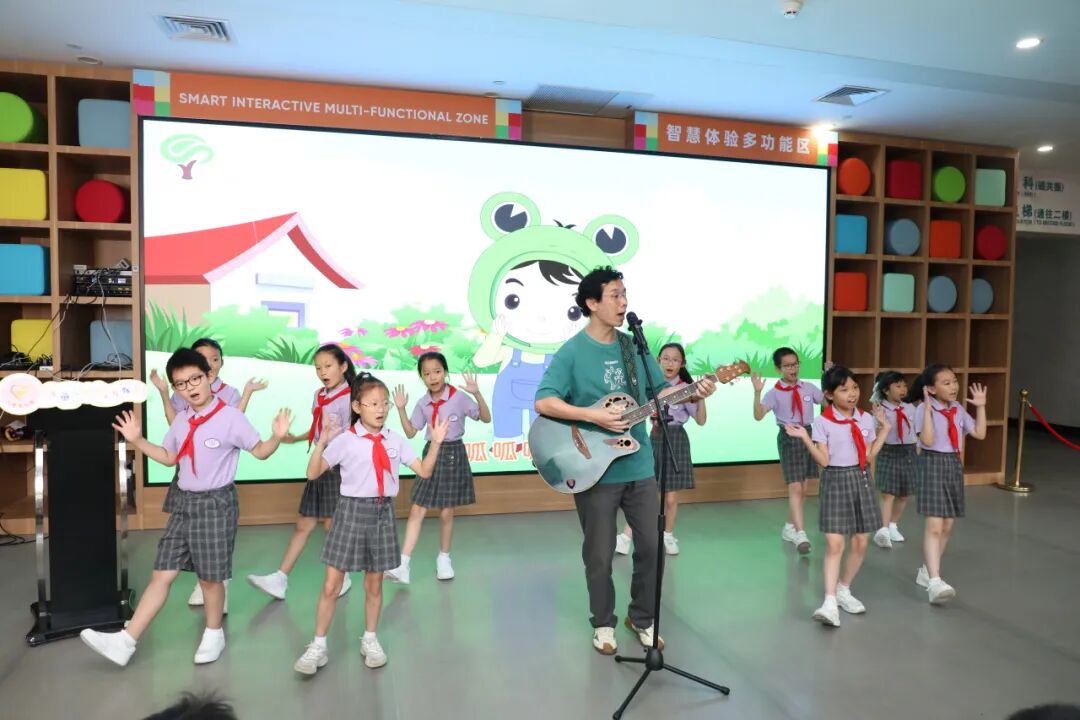 “游泳之前要做好热身运动,预防下水脚抽抽;宝宝在家的时候,安全防护记心头……”伴随着童谣唱作人王渊超欢快的吉他声和孩子们童真的歌声,儿童无伤害倡导行动启动仪式拉开了序幕。今年是复旦儿科与孔祥东乐疗工作室合作的第七年,郑继翠医生与孔祥东乐疗工作室的童谣唱作人王渊超老师携手发布了第15首医学科普童谣《预防溺水 呱 呱 呱》,将医学科普知识用短小精干寥寥几十个字的歌词展现出来,配上轻松好记的音乐。通过儿童喜闻乐见的童谣唱诵方式让孩子们将预防溺水的重点牢记在心。竞技宝app官方党委李倩书记也强调:儿童安全,是一场没有终点的接力赛,每一份力量都无比珍贵。守护儿童健康,更要初心如磐,永不止步!