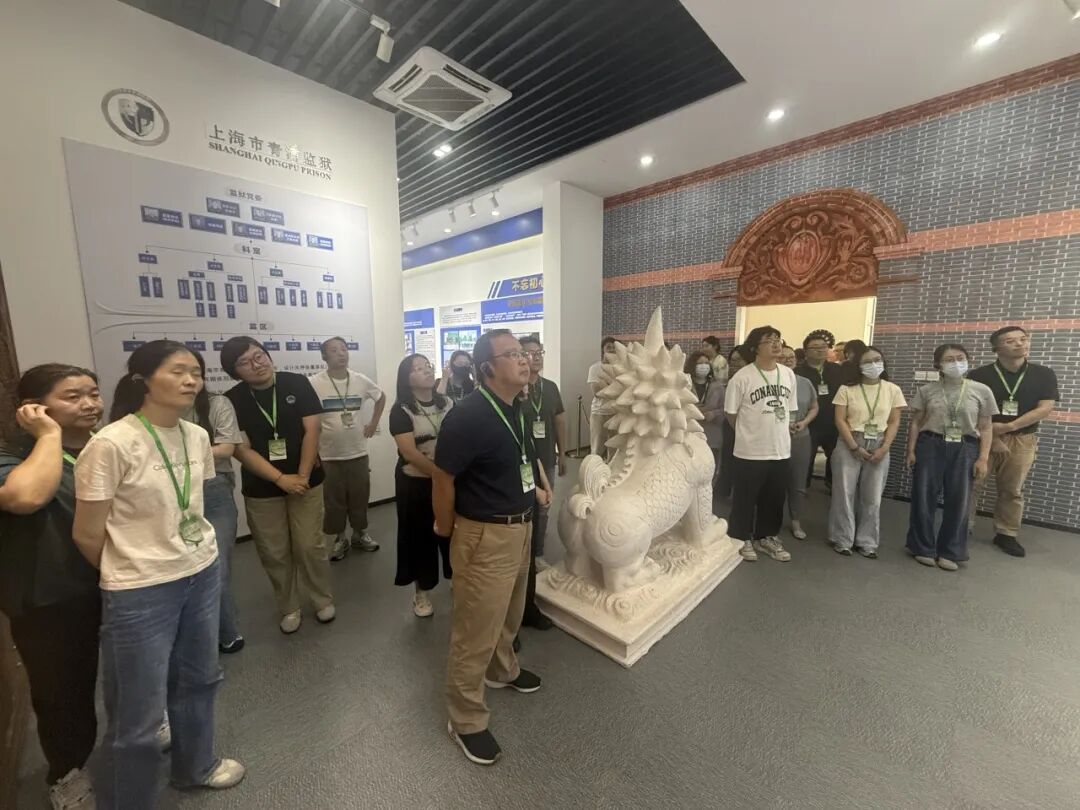在监狱干警的引导和讲解下,全体人员依次参观了监狱陈列室、监管区罪犯劳动现场、罪犯生活现场、矫正项目美术工坊等区域。监狱陈列室详细展示了青浦监狱30多年不断创新优化管理的实践成效,许多服刑人员在监狱改造过程中净化思想、习得一技之长,开启了人生新路的历程。穿过两道厚重的铁门,踏入监管区。高墙电网、铁门森严的环境扑面而来,行走其间,身不由己、囹圄困身的感受尤为深刻,每一道门禁、每一处岗哨都在无声地诉说着自由的可贵与法纪的威严。
