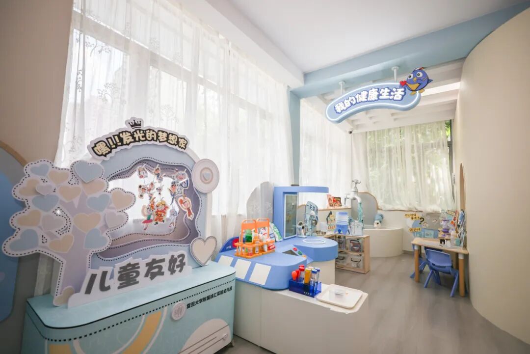 作为国家儿童医学中心,竞技宝app官方长期致力于儿童全周期健康促进与医学知识普及,并于2018年创新打造全国首个“梦想医学院”儿童沉浸式医学体验馆;2021年,复旦儿科上线全国首个住院患儿健康管理床旁智能交互系统——“梦想医学院”线上版,在院内17个住院病区设置超800台植入“梦想医学院”线上软件的床旁暖屏设备,通过智慧医疗创设全儿童人群全流程健康管理空间;2023年,“梦想医学院”项目持续升级,在梅陇镇党委的支持下,创立全国首个“儿童健康一平方”,将儿童自主健康发展理念输送至社区;2024年,“梦想医学院”项目基于儿童全周期健康发展理念,深度融合生命教育内涵,启动院内儿童生命关怀体验馆设计。本次与幼儿园合作,是医院积极响应“健康中国”战略,推动专业医学科普下沉、转化和输送的关键一步。主题馆的建立,旨将专业儿童自主健康管理知识与趣味体验课程送入学龄前教育场域,实现专业医学科普前移、儿童自主健康管理启蒙。