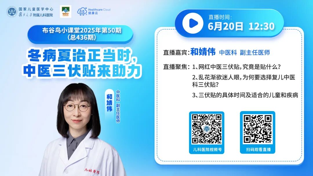 🎙 直播主题: 守护童真,冬病夏治——儿科专家带您科学认识“三伏贴”