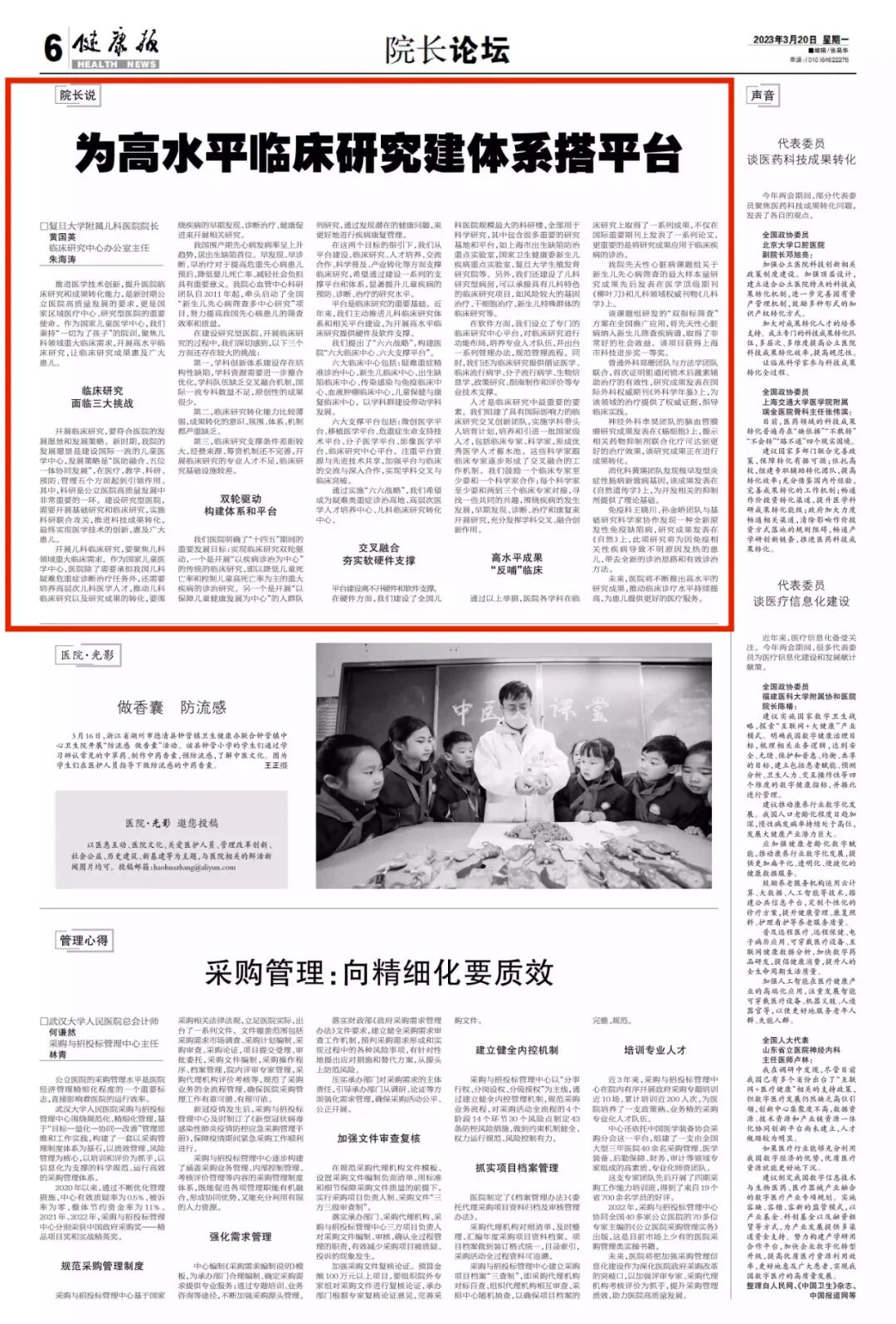 我们提出了“六六战略”,构建医院“六大临床中心、六大支撑平台”。